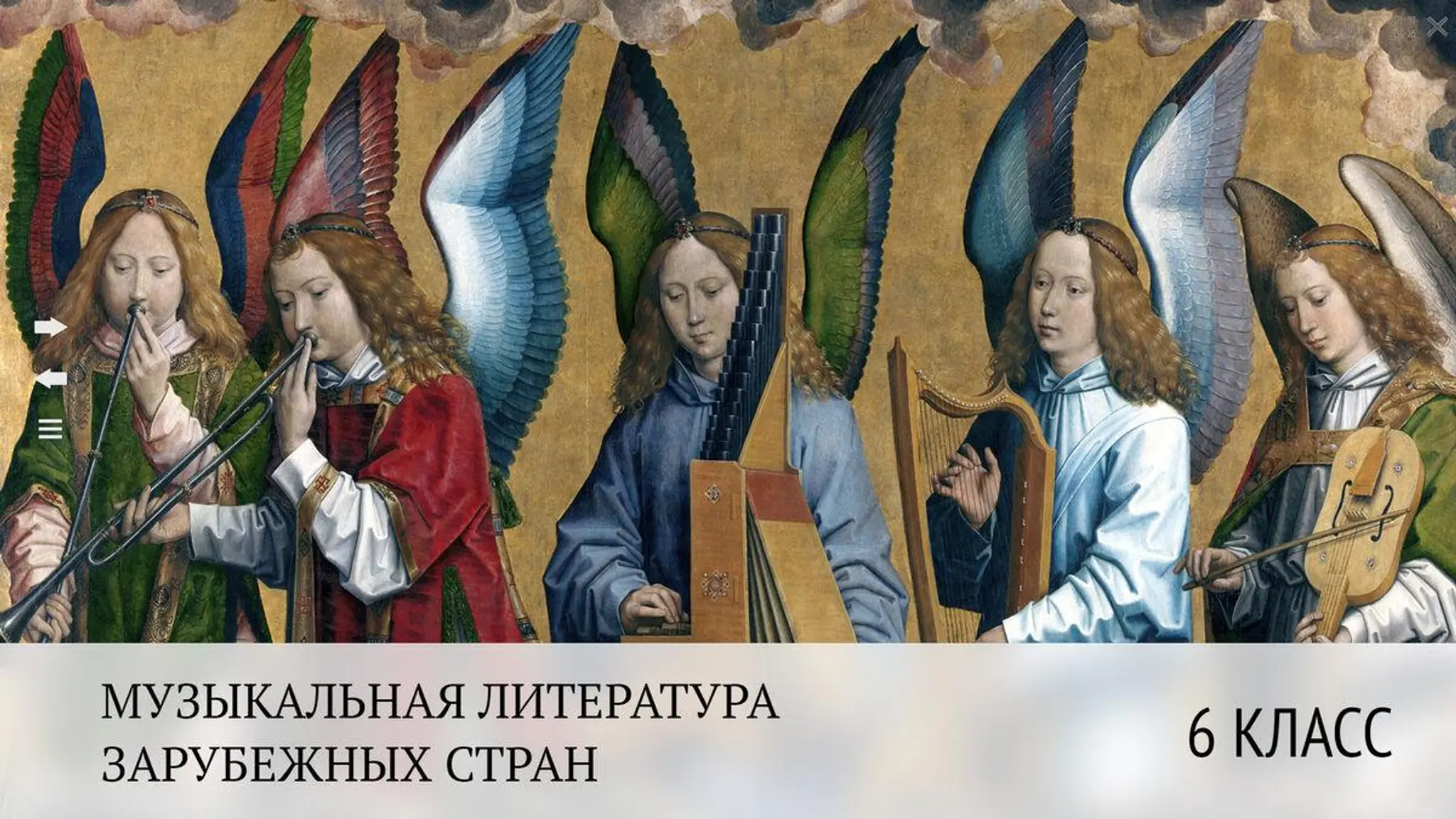 Структуру интерактивного пособия составили пять глав. Представленный в них учебный материал ориентирован на примерную программу предмета «Музыкальная литература» и учебник «Музыкальная литература зарубежных стран» О.И. Аверьяновой, Г.А. Жуковской и А.А. Петровой.