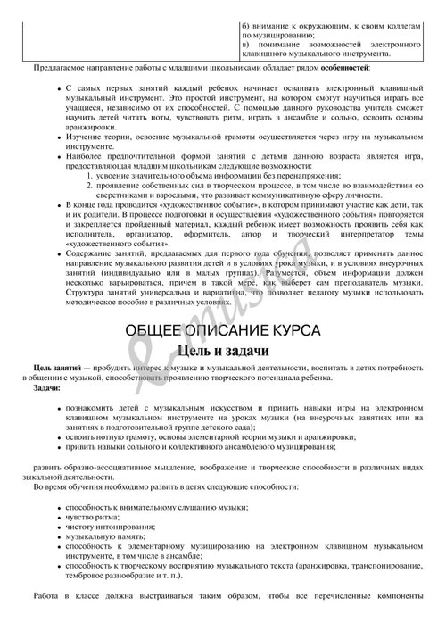 Предлагаемое учебно-методическое пособие создано на основе требований Федерального государственного образовательного стандарта начального общего образования Российской Федерации. В пособии представлены научно-методические основы курса «Музыка» с активным развивающим компонентом. Таким компонентом является игра на электронном клавишном музыкальном инструменте. Показан путь реализации целей и задач, описаны особенности освоения инструмента, планируемые результаты по итогам изучения курса, а также дано краткое содержание занятий. Данное издание является неотъемлемой частью учебного пособия, в которое также входят CD-диск с аудиосопровождением и Нотное приложение. Адресовано учителям музыки в общеобразовательных организациях.