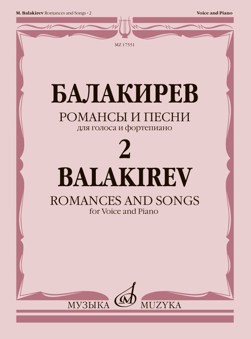 The collection, complied by the Professor of the Moscow Conservatory N. Kulikova, includes diverse vocal pieces by the outstanding Russian composer M. Balakirev on the Russian poets' lyrics, both popular and undeservedly forgotten.