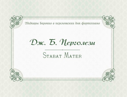 В издании представлено фортепианное переложение одного из признанных шедевров итальянского композитора XVIII века Дж. Б. Перголези. Произведение, первоначально предназначенное для вокально-инструментального состава, написано на текст средневековой секвенции "Stabat Mater dolorosa" ("Стояла Мать скорбящая"). Фортепианная транскрипция "Stabat Mater" выполнена на основе автографа. Наиболее существенные разночтения автографа с позднейшими рукописями и изданиями приводятся в комментариях.